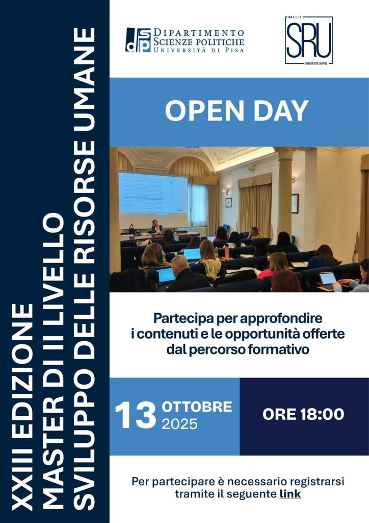 Nei giorni 9, 10 e 11 ottobre, presso il Polo Fibonacci, il Dipartimento di Scienze politiche vi invita a partecipare all’evento UniPi-Orienta 2025. Un’occasione unica per conoscere i percorsi formativi e le opportunità offerte dal nostro Dipartimento.