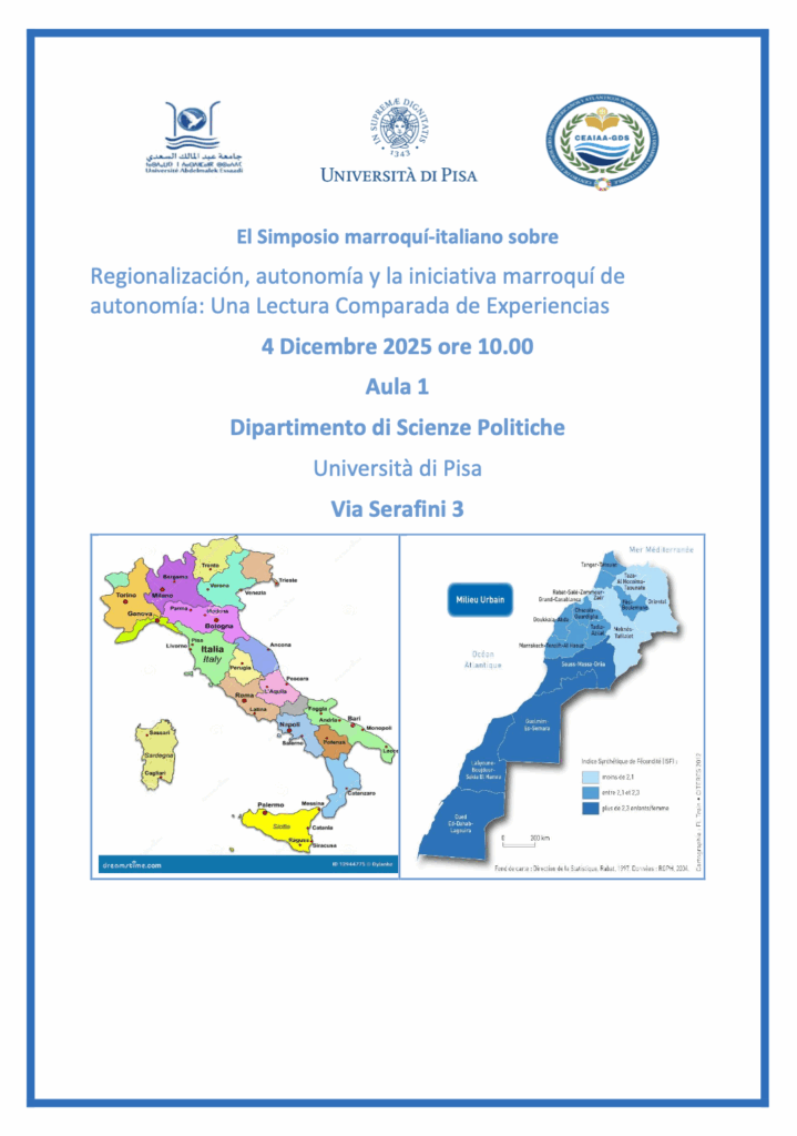 Il 4 dicembre si terrà il seminario “El Simposio marroquí-italiano sobre. Regionalización, autonomía y la iniciativa marroquí de autonomía: Una Lectura Comparada de Experiencias”.