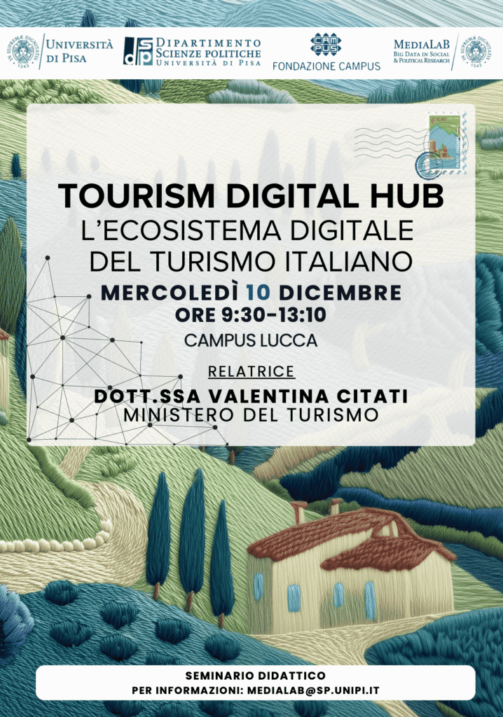 Mercoledì 10 dicembre 2025, dalle ore 9:30 alle 13:10, presso il Campus di Lucca, si terrà un seminario didattico dedicato al tema del turismo digitale in Italia.