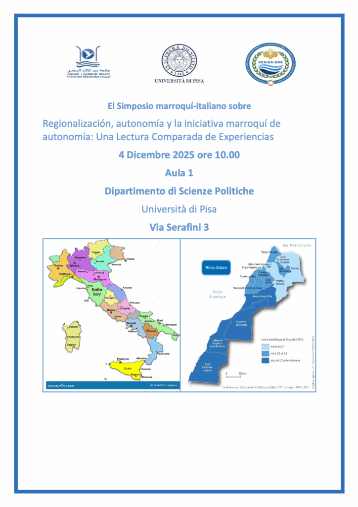 Il 4 dicembre 2025 si terrà il seminario “El Simposio marroquí-italiano sobre. Regionalización, autonomía y la iniciativa marroquí de autonomía: Una Lectura Comparada de Experiencias”.